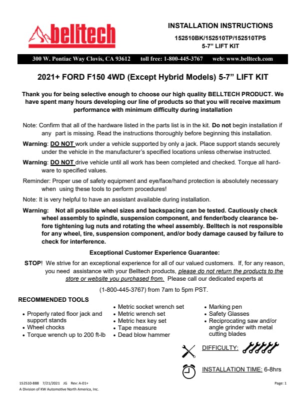 - Front and rear F150 specific tuned Trail Performance struts/shocks