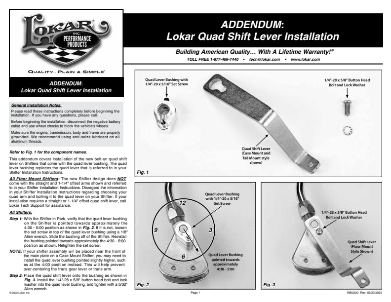 - Same Outstanding Features Of Our Transmission Mounted Shifters